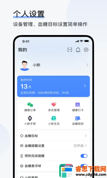 欧态健康是欧态科技无锡有限公司开发的血糖监控工具,能与血糖仪连接跟踪血糖,提供数据报告分析和专业指导。有提醒报告、健康管理等特色功能,支持设备管理、血糖检测等,界面简洁,操作方便。