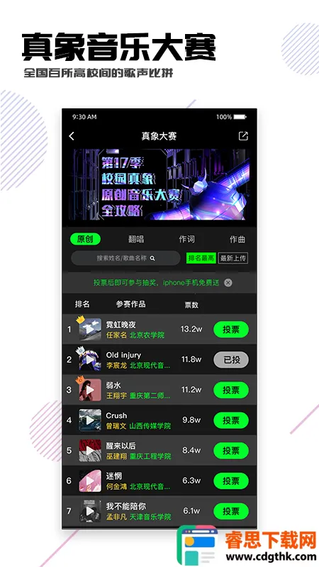 校园随身行app是激发音乐的软件,有独创音乐云发行服务,提供便捷传播。能推送校园活动、新歌,更新动态。支持在线发布、投票等,汇集多样活动与海量歌曲,带来乐趣校园生活,还有任务奖励。