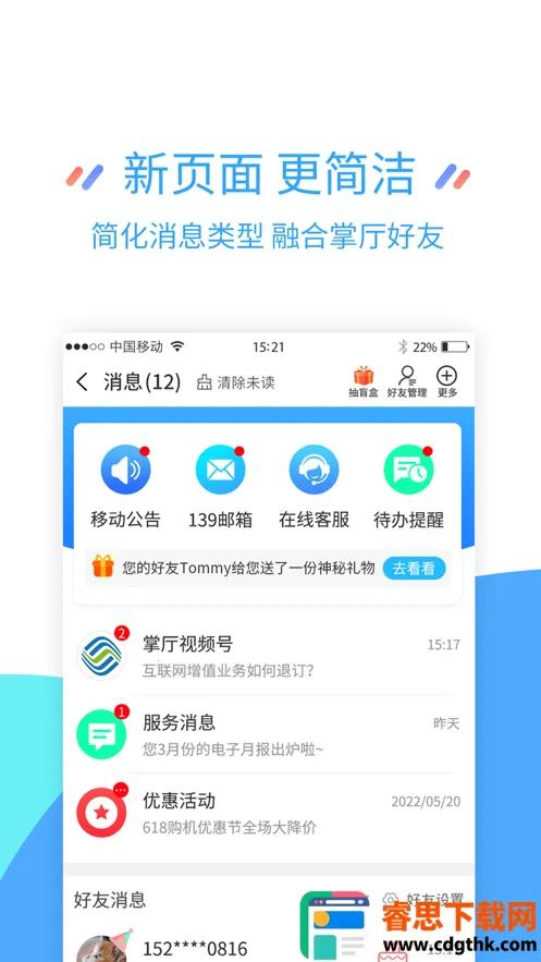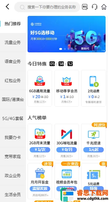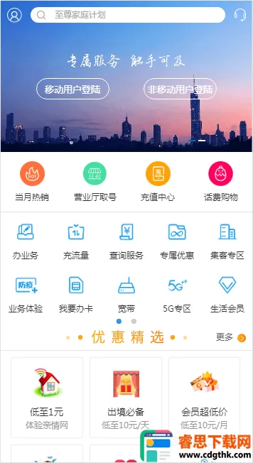 1. 免流量通信服务:话费充值、套餐办理及流量查询等操作,全部免流量消耗。
