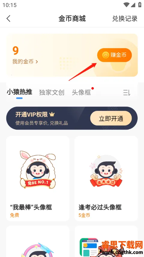2、然后点击赚金币。