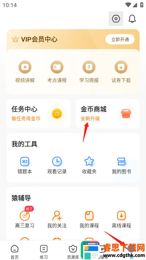 1、首先打开app进入我的界面,点击金币商城全新升级。