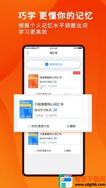 1. 提供海量词表,覆盖各阶段学习需求,还有专业词汇书,依个人记忆水平调整出词,让学习更高效。