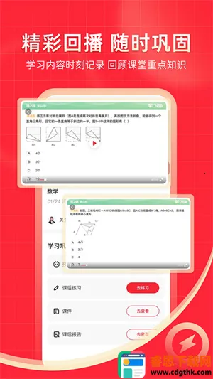 3. 多样学习方式:有课程提醒,可预约购买中小学全科课程,获取消息和优惠。支持课程回放,方便回顾反思。跨屏互动,配合电脑平板客户端,手机拍照一键上传解决疑难。