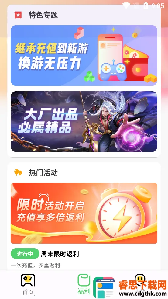 风游精游戏盒子是个超棒的手游平台。它能满足你找各种手游的需求,海量游戏资源,各种类型都有,上万款游戏资讯任你挑,不管是热门新游还是经典传奇,都能轻松找到。这里更新超及时,定期更新游戏库资源,让你总能接触到最新游戏内容。它功能丰富,有专属推荐、云游挂机、福利中心、玩家论坛等。能根据你的游戏习惯和喜好推荐相应游戏,节省找游戏时间。还提供大量趣味玩法,支持在线试玩。所有游戏经安全检测,无病毒无木马,安全放心玩。有详细分类和专区,输入关键字就能自由查询。更有免费礼包、低价充值通道和超值折扣,让你玩游戏更省钱省心。在这里,你能轻松找到喜欢的游戏,享受丰富的游戏体验,赶紧下载试试吧!