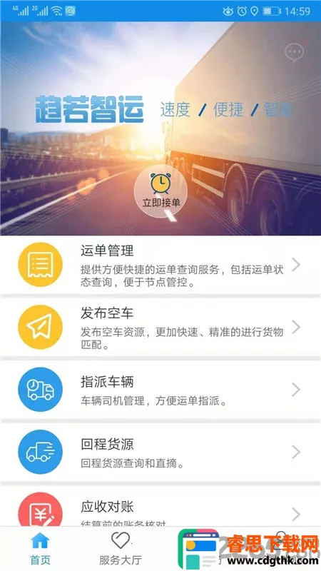 3. 快速审核与运单统计:满足物流信息化需求,整合零散运力和货源,带动货运行业集约发展,方便车主管理订单、及时接单增收。