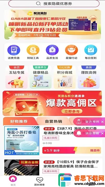2. 低折商品优惠券抢购:每天都有大量低折商品优惠券可抢,手慢无,抢到就是赚到。