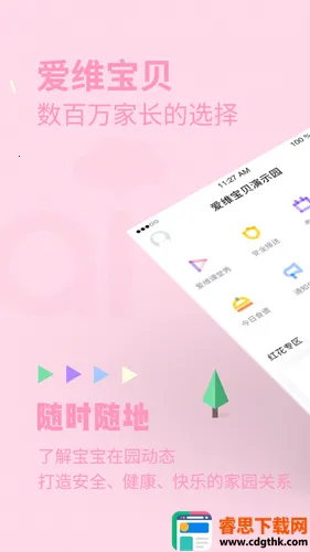 3. 功能丰富:涵盖爱维课堂秀、宝宝相册、考勤签到、消息通知、成长档案、即时聊天等,全方位保障孩子成长及家园共育。