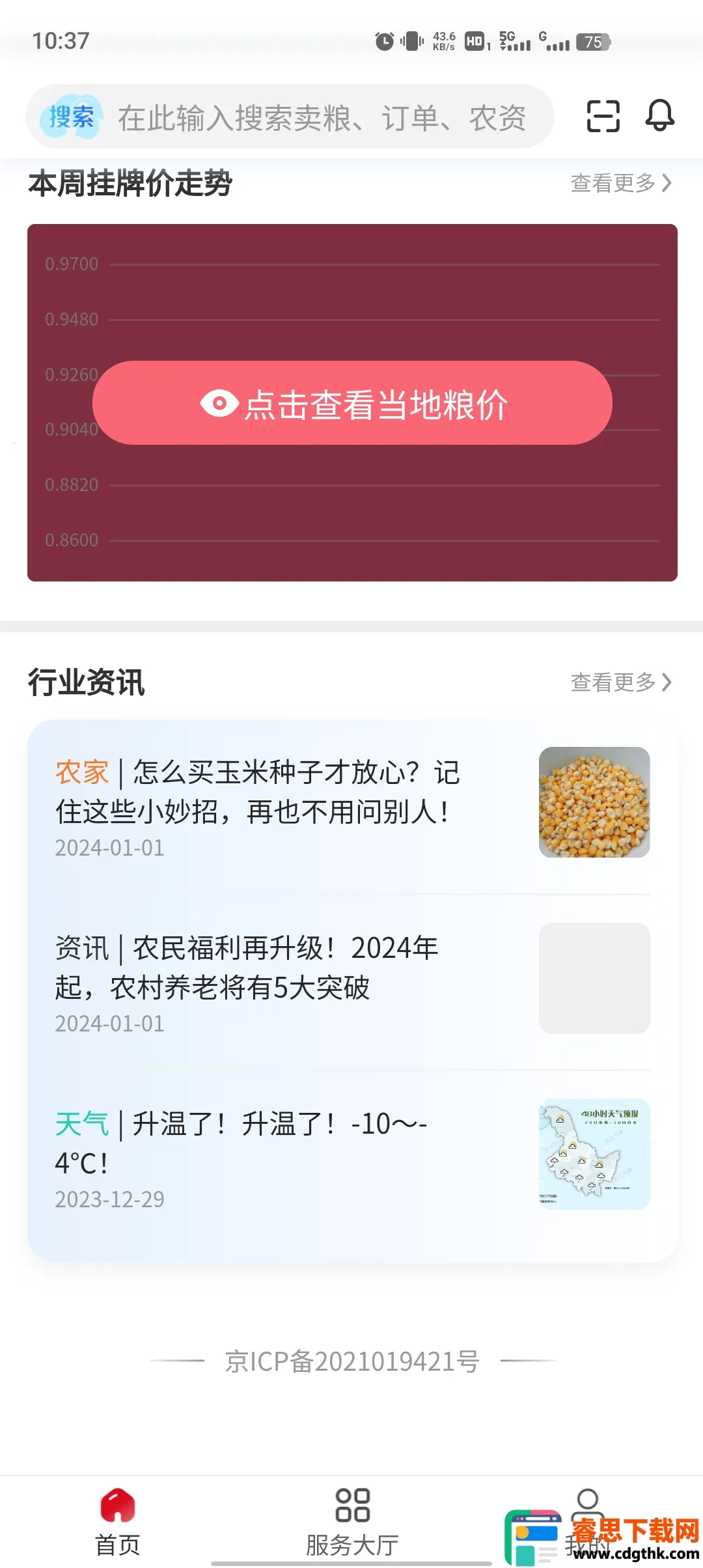 如果你想在兴兴象农上查看粮食价格,那可太方便啦!这是一款专注农业领域的手机工具软件。它能实时更新各种市场数据,包括粮食价格的变动趋势,让你随时掌握粮食价格动态。有了它,你再也不用四处打听粮食价格啦。而且它还提供农业相关的信息资讯、政策内容,最新的农业改革政策资料也能随时查阅浏览。在线管理农业生产办公功能也很实用,能帮你轻松搞定很多农业事务。通过简单直接的业务记录和处理,就能完成采购服务。它以平台化方式提供多要素供给,服务农业生产流通加工全链条。用户借助应用端可快速实现农资金融物流仓储市场服务的多方交互,让农业经营变得简单高效,轻松满足你查看粮食价格及其他农业需求。