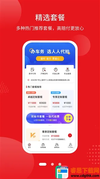 3. 一站式服务贴心:提供沪牌选号、年检代办、外牌转沪牌等一站式服务,还通过智能推荐多种热门精选套餐,更懂用户需求,让用户省心。
