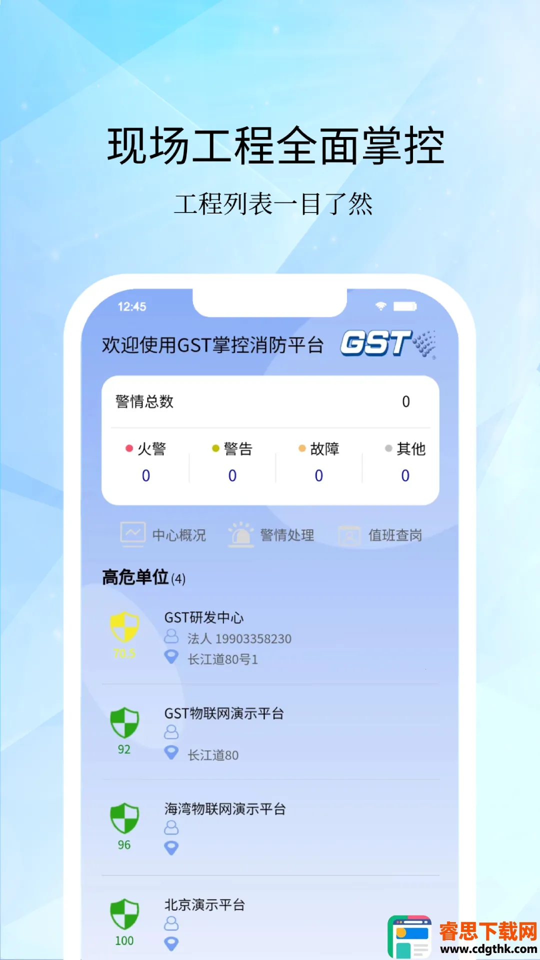 GST掌控消防2026官方正版APP专注消防监控,可实现多设备监控,手机端实时掌握消费情况,接收报警信息并同步至119,还有详细设备状态,便于管理,保障工作高效,快来下载使用。