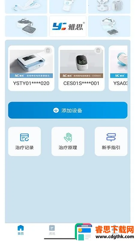 智能设备连接:雅思健康生活提供无线理疗康复仪设备,能智能配对连接,用户可快捷添加所需设备,实时开启治疗模式,详细记录医疗康复数据,更好地查看治疗康复情况,全面管理自身健康。