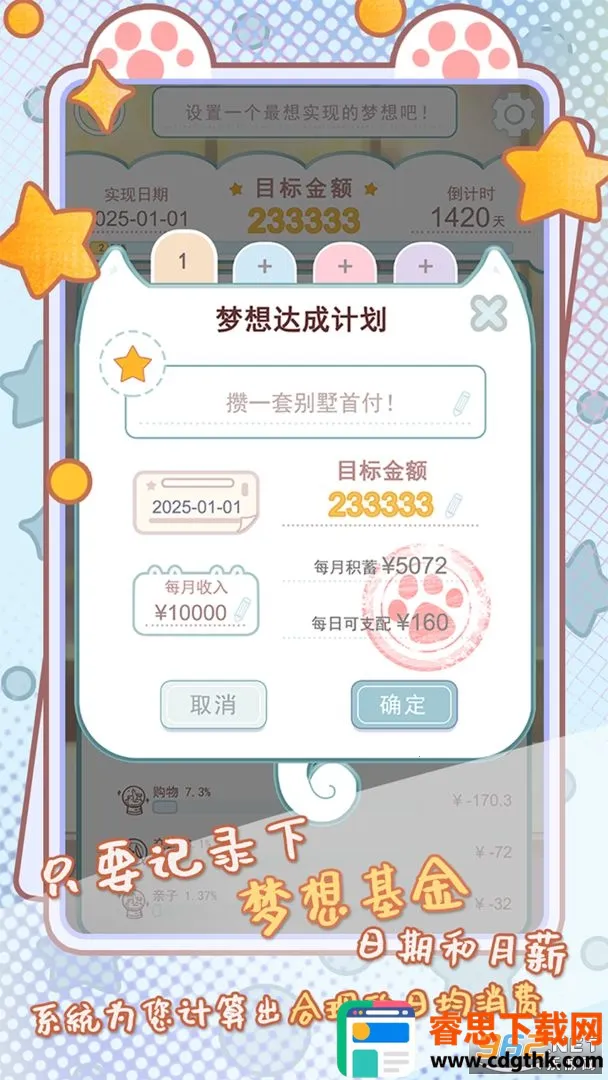 4、自动规划消费:记录梦想基金后,系统自动规划每日消费金额。