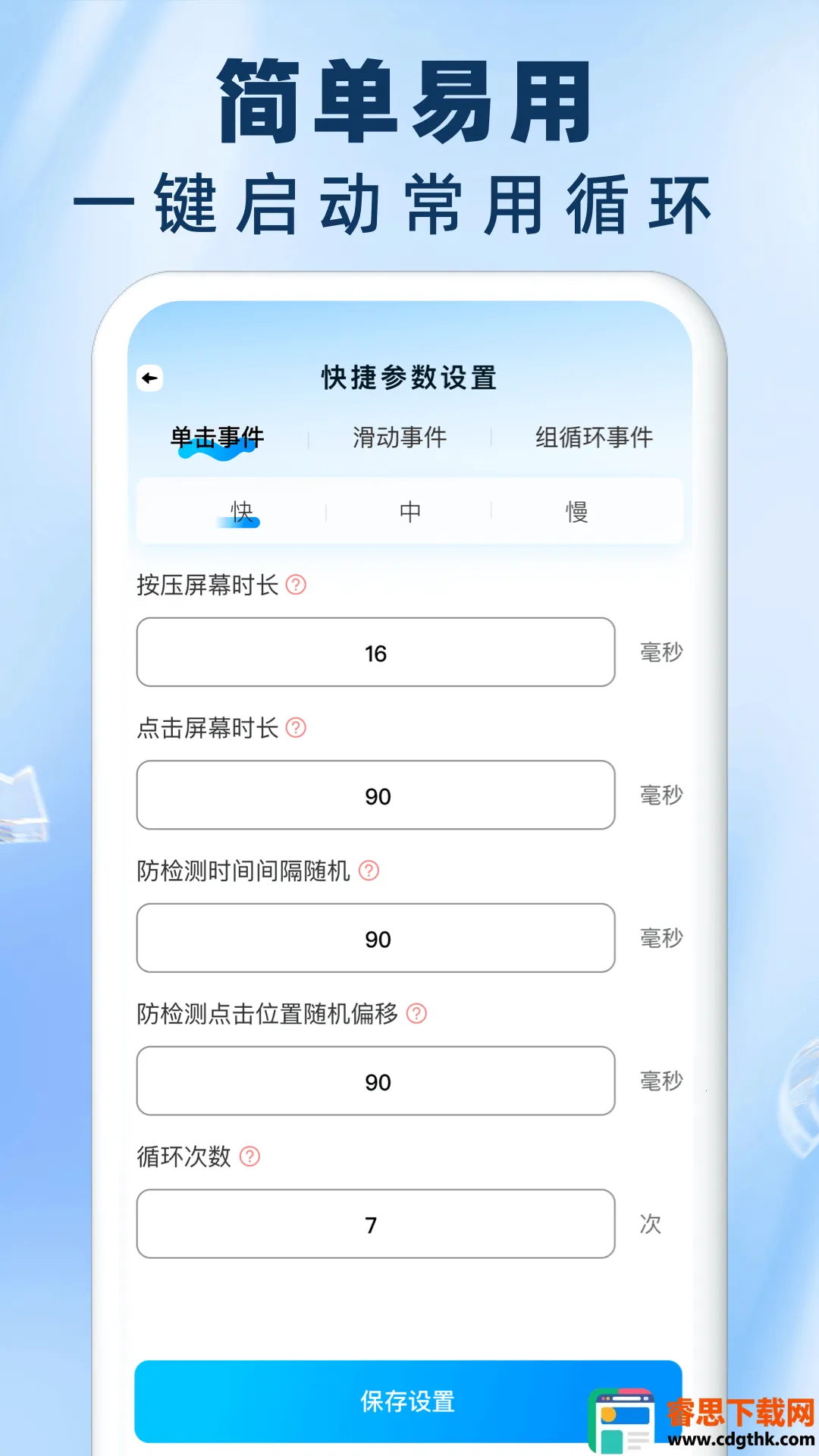 2. 每次循环次数可自由设置,且设置数据能自动保存,方便又实用。