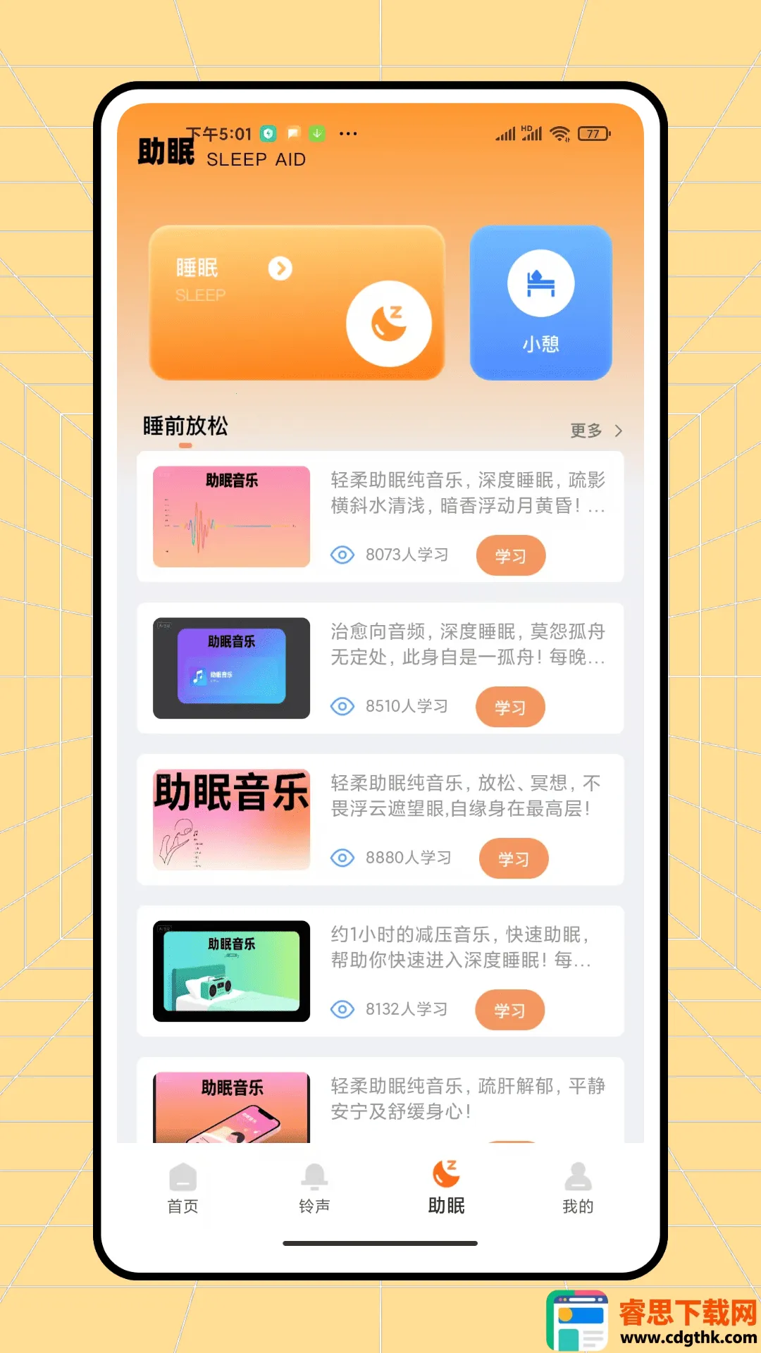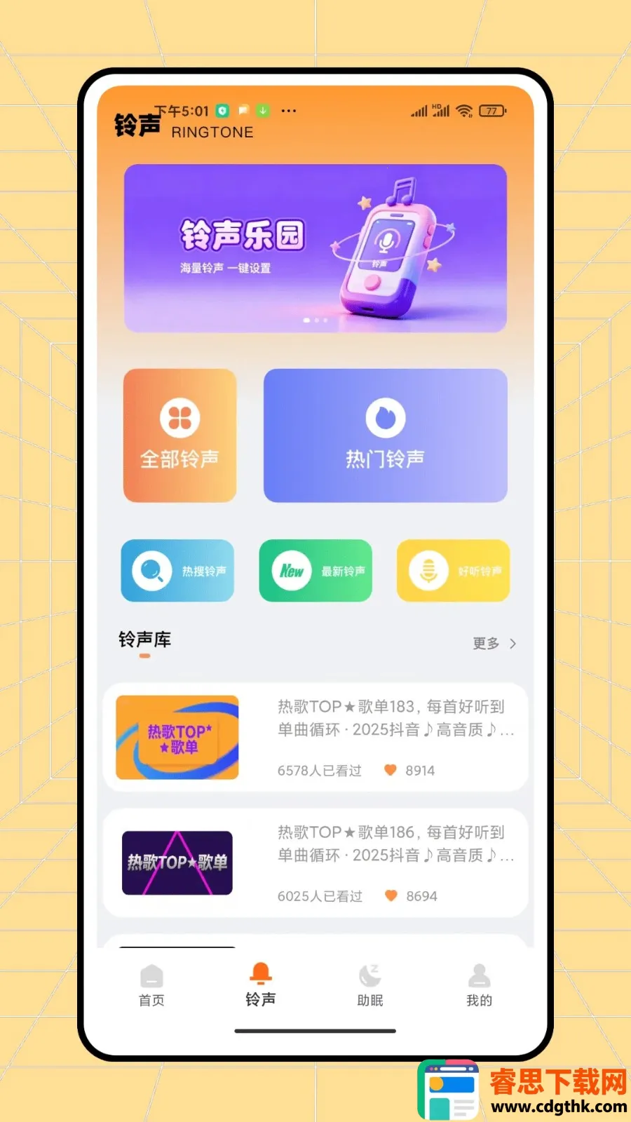 3. 铃声丰富满足个性:用户可从分类铃声库中选择或使用本地音乐文件作为闹钟铃声,还有海量铃声资源任你挑选,满足多样需求。