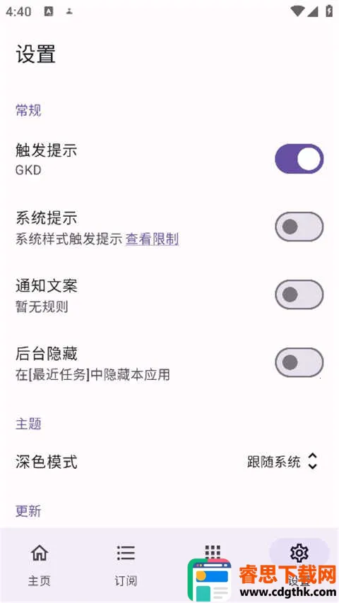 gkd跳过广告2026官方最新版本是专注提升用户体验的工具。能自动跳过各类应用广告,支持多种场景,用先进技术精准定位跳过按钮,有自定义规则等功能,操作简单、兼容性强,隐私保护好,值得被广告困扰的用户尝试。