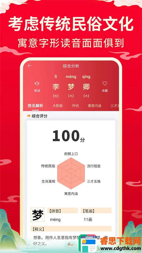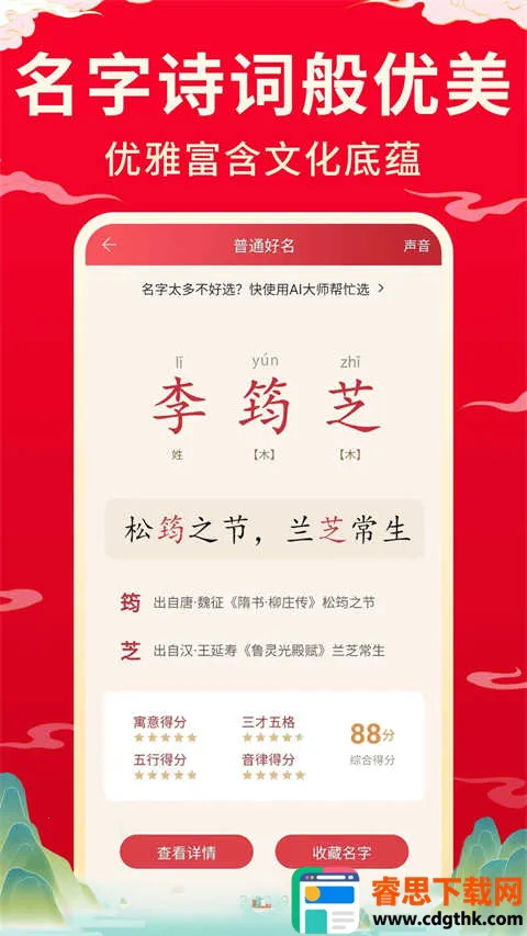 3. 内置专业姓名学解析功能,详细解读名字含义与搭配。