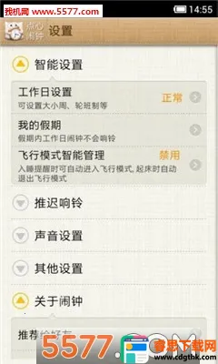 4、节假日智能提示:能依据节假日智能分辨,补休工作不怕迟到,假日不会被吵醒,假期结束自动恢复工作。