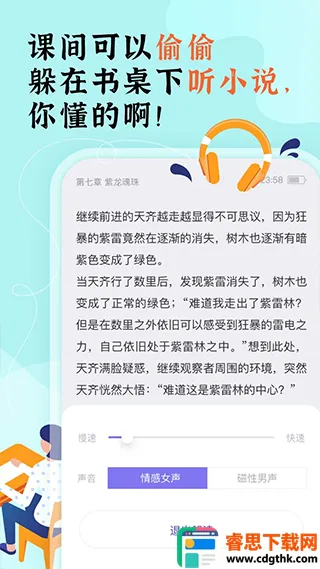 4. 无广告弹窗干扰,阅读界面可任意调试,听书功能也很便捷。