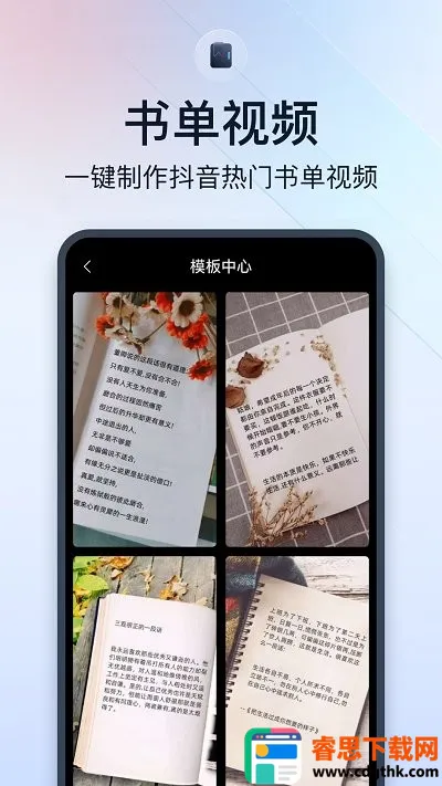 2. 提供众多热门模板素材,比如内置书单视频模板,可一键制作抖音热门书单视频,轻松打造爆款。