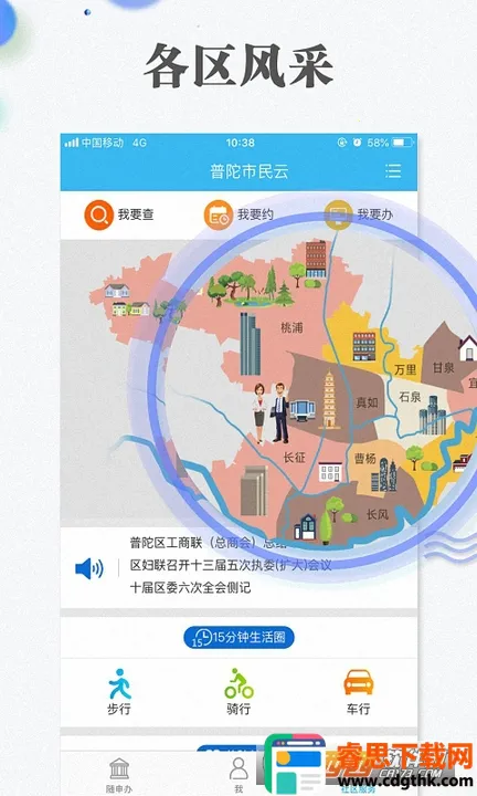 约办事:用户可以通过办事预约功能,享受政府全区通办事项的便捷,通过服务预约功能足不出户实现文艺演出、电影讲座等文化活动和日常生活修补预约服务等。