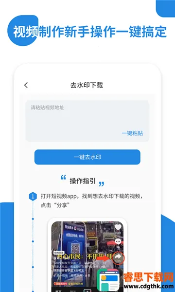 1、操作简单:几步即可完成视频处理,轻松去除水印、裁剪视频等。