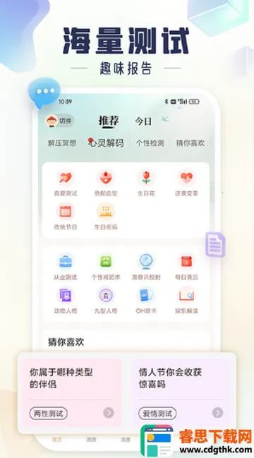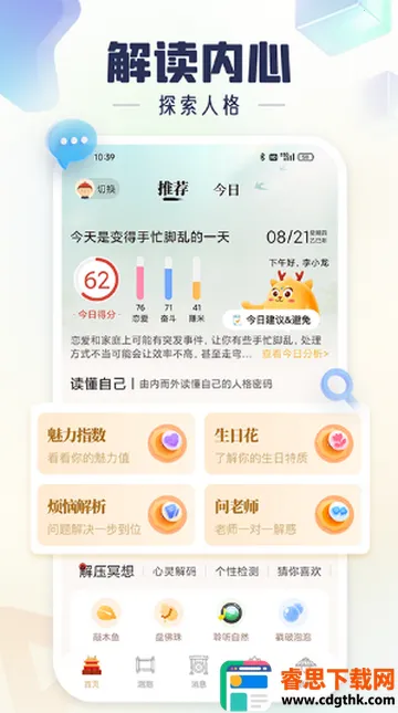 4. 聚集多种测字算命功能,如八字排盘、生肖运势、祈福求签等。