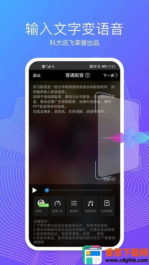 讯飞配音文字转语音是一款实用的语音合成手机软件,由科大讯飞推出。采用全新技术,有真人主播,能快速将文字转为语音。操作简单,适用于多场景,提供多种功能,如智能合成、便捷编辑等,还修复过已知问题。