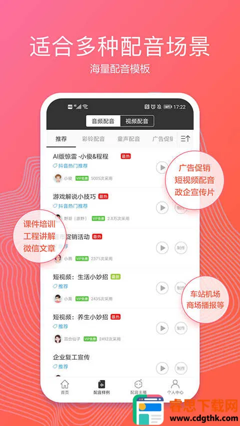 3. 文案丰富:拥有海量样音模板,文案优质,背景音库丰富,能完美搭配,满足多样场景。