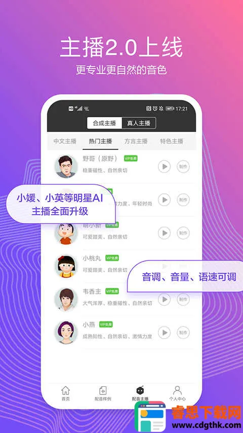 2. 真人主播:搜罗全国知名真人主播,提供一站式配音服务。