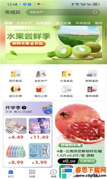 1. 商品种类丰富,涵盖现代食物、水产蛋奶等,分类广泛,海量商品任你挑选。