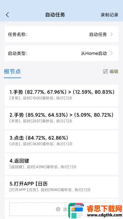 它的功能超强大,能轻松快速完成重复性操作,短时间内快速连续点击,所有功能都能自定义设置,自动点击比手快十倍。支持多种手势,操作便捷。内置脚本工具箱,提供免费实用手机脚本辅助,还有强大的抓抓工具,抓点抓色更准确,脚本可一键导出。使用也简单,打开软件授予权限,在首页任务列表添加任务,选择录制起点,在悬浮窗点击开始就能录制各种操作,录制完可查看操作和延时,还能定时设置。有了它,就能轻松解放双手,让操作更高效智能。