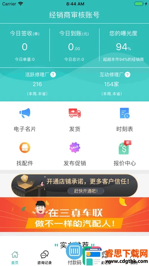 这款软件对经销商来说十分实用。它能让经销商轻松查看各类数据,如历史发货收货记录、本周活跃修理厂数量等,资金到账提醒及时,还能智能统计店铺热度。其特色显著,专业汽配物流平台配送快、服务好、资金安全,货款极速到账,线上线下结合推广,修理厂主动上门。多样化汽配圈平台入驻简单、缴费透明,开店卖货交流无阻。而且更新及时,新增直播功能。对经销商拓展业务、提升效益帮助很大,**是一款值得推荐的软件**。