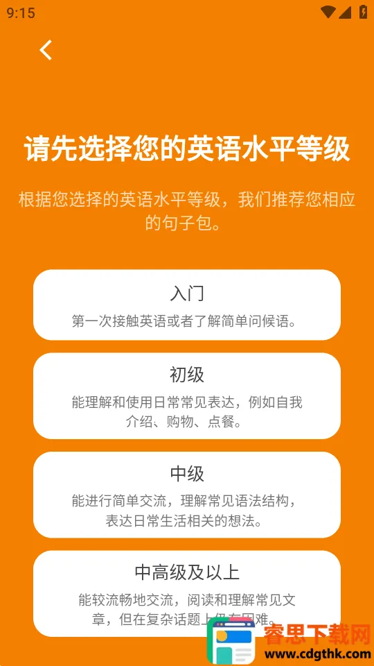 2、进入软件选择您的英语水平。