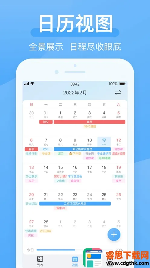 详细日历视图,预览计划超便捷:软件提供详细的日历视图,用户能在此轻松预览自己这个月的计划,查看放假安排等,大计划也能在此清晰呈现,方便用户整体把控时间和任务安排。
