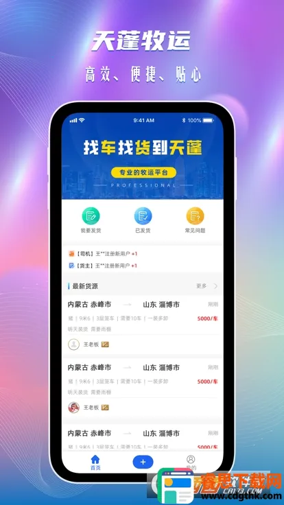 天蓬牧运司机是专为货运司机打造的畜牧运输接单平台。提供海量货源,可自由接单,还有货车加油位置查询等功能。整合物流等信息流形成大数据,实现可视化监控与协同作业,提升管理效率与行业规范。