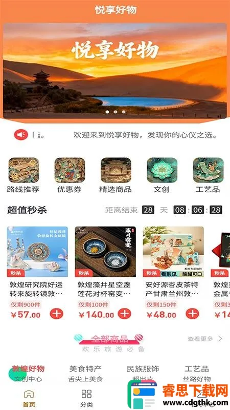 悦享好物 2026 是一款专注旅游与文创好物的综合性购物平台,提供路线推荐、商品推荐等功能,有海量商品、丰厚优惠券,还能体验拼团砍价等福利,助你便利购物、享受实惠出游服务。