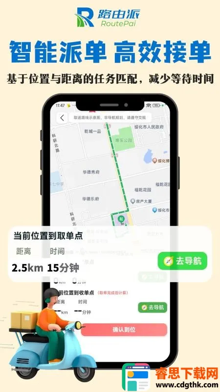 2、智能派单效率高:提供线上智能派单,依据骑手位置派单,让骑手能更高效地接单,轻松提高接单效率,节省寻找订单时间。