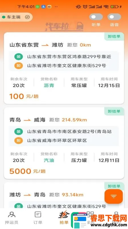 3. 海量货源实时推送:车主能随时获取海量货源接单。