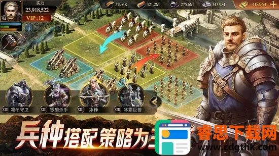 3. 全球战争:战争一触即发,需努力发展城市、壮大军队,和盟友一同备战,与全球不同国家玩家争夺王座。
