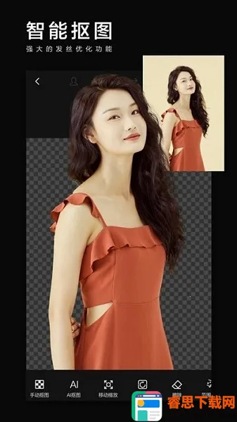 1. 智能AI算法:利用先进的智能AI算法,能以有趣且简单的方式剪切图像,精准识别人物、商品、动物等复杂主体边缘,发丝、透明物体等细节处理自然,不管是一键剪切肖像、产品、动物、文字还是图形,都能轻松实现,还可替换和删除背景。