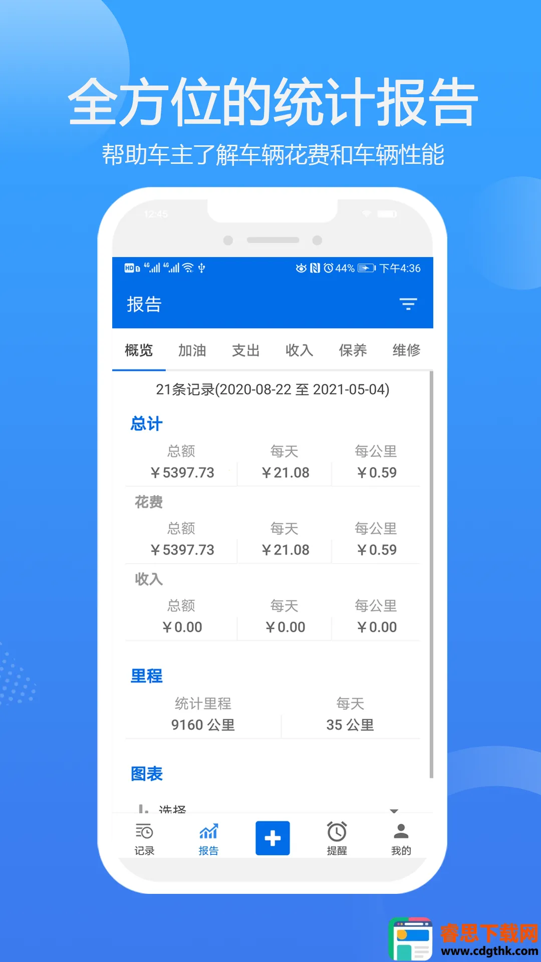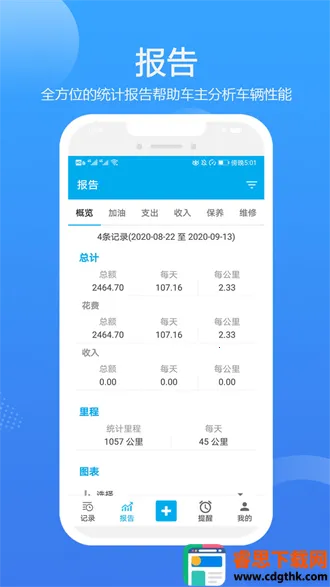 3. 多维度报表助分析:对车辆支出和收入进行分类,生成如每月开支图表、成本对比图表等10多种清晰图表,助您深入了解车辆运营情况,合理规划用车。