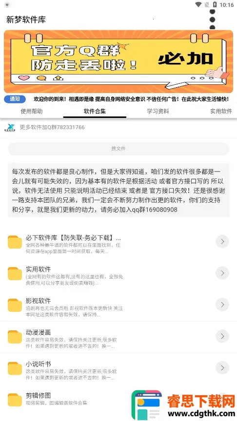 新梦软件库是资源下载平台,汇集软件合集、学习资料、影视娱乐等资源,含破解游戏。有丰富分类,界面简洁,安全可靠,高速下载。可互动交流、评价软件,每日更新,方便用户获取所需,享受高效体验 。