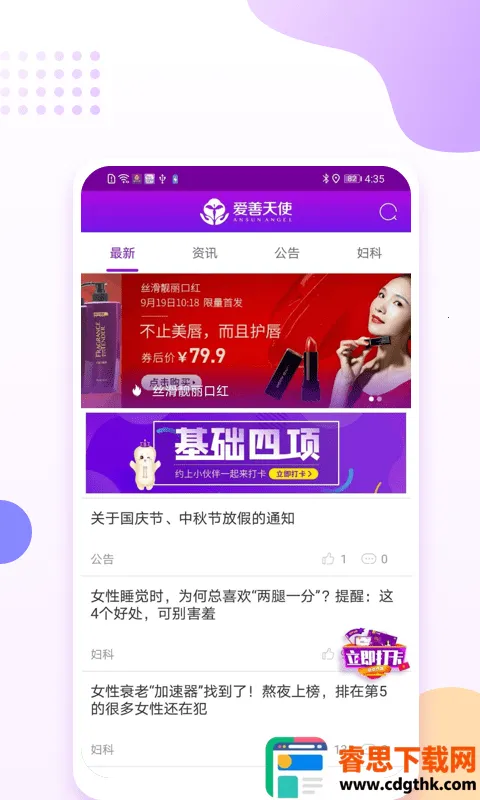 爱善天使app是一款专注女性健康的软件。它能帮女性更好地呵护身体,尤其是特殊时期的生理健康。软件整合了众多健康护理工具和资源,提供专业的女性生殖健康信息与实用方案,轻松应对经期等问题。有丰富的健康知识和行业资讯,助你深入了解女性健康护理。比如能在妇科栏目掌握更多妇科知识;在商学院学习经销知识;在影音专区看视频资源;通过知道中心找问题答案;在学习中心学习近期知识视频课程;还能用素材栏搜索查找所需素材。它还支持智能一键导航,快速找到附近爱善专卖店。在这里,女性朋友能享受贴心专业的美容健康一站式医疗服务,获取私密健康资讯,知道如何保护自己健康,轻松便捷地满足各种女性健康需求。
