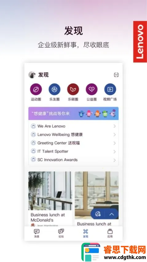 4. 企业发现:可阅读企业资讯信息,轻松加入圈子参与。