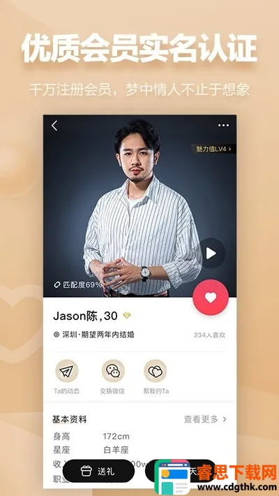3. 真实资料有保障:经过人工严格审核个人资料,涵盖各种身份学历等认证,只为给你满满的安全感与可靠感。