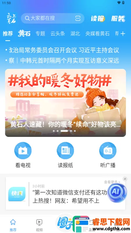 如果你想观看黄石电视直播,云上黄石app是个不错的选择。它是黄石政府指定的移动政务客户端,整合了新闻政务和服务功能。在这里,你能畅览热闻头条,了解天下大事,获取政务信息发布,办理政务事务,享受便捷生活服务。