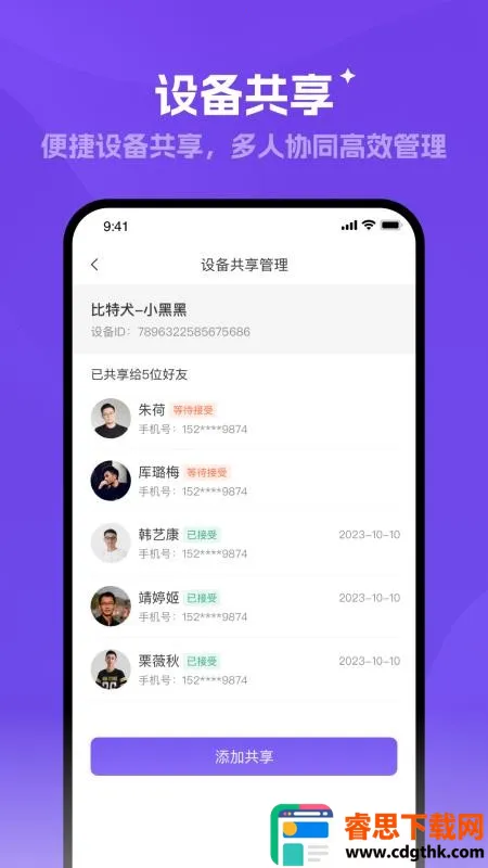 3. 设备共享协作:支持用户进行设备共享,促进团队协作,实现多人协同管理,方便又高效。