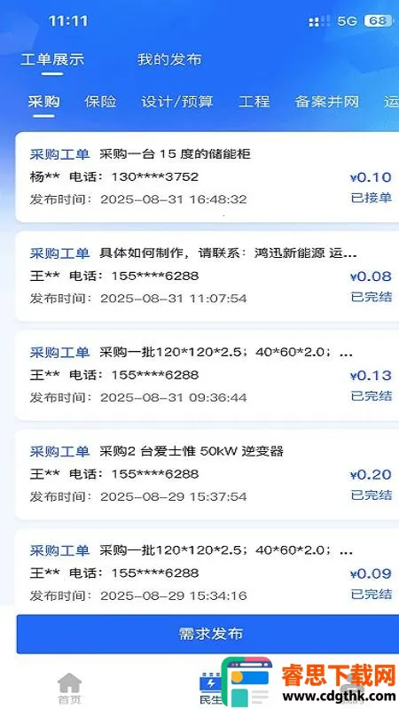 3. 便捷发布需求单:可预览采购工单列表,随心发布自己的需求工单,快速便捷,让您的需求及时传达。