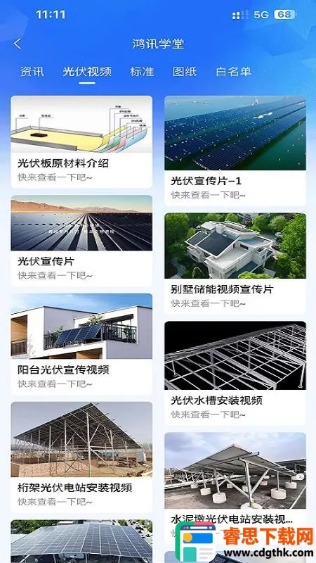2. 专业学堂助学习:提供线上资讯学堂,有众多视频供您观看,能轻松学习新能源知识,尤其光伏资讯知识。