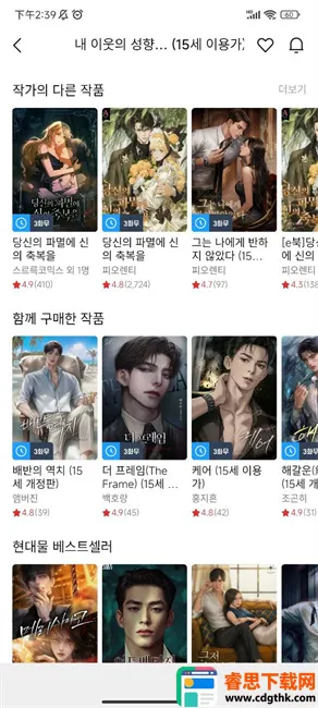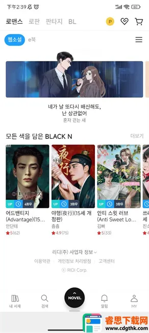 ridibooks是兼容安卓、ios和网页三端的韩国漫画阅读软件,韩漫资源丰富,题材多样,连载完结皆有,更新快。注册登录后可自由阅读,网页版借助翻译插件,手机版配合屏幕翻译器,官网https://ridibooks.com 。